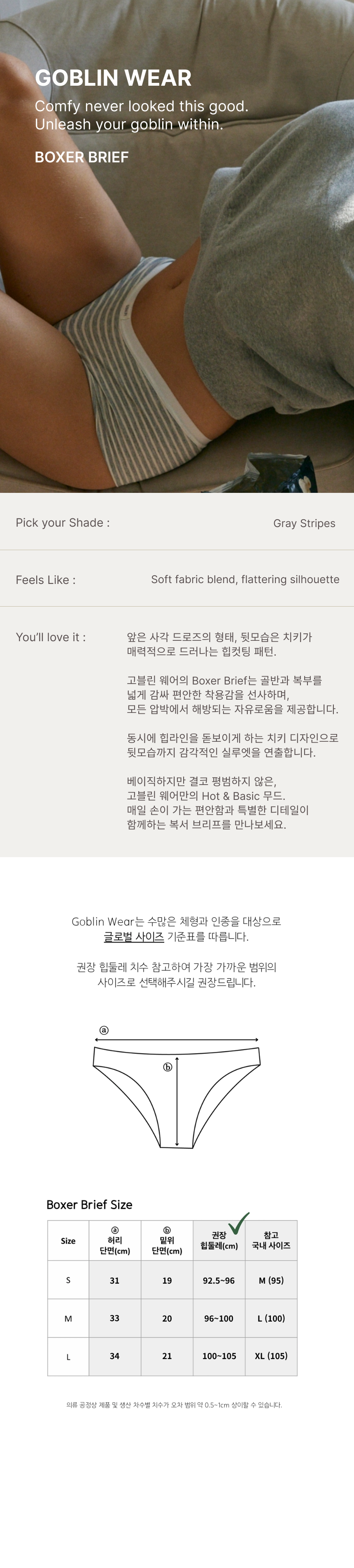 원단 특성, 신축성에 따라 동일 사이즈라도 디자인별 실측 및 패턴 차이가 있으며 최적의 피팅을 위한 설계로 불량이 아닌 점 참고 부탁드립니다.