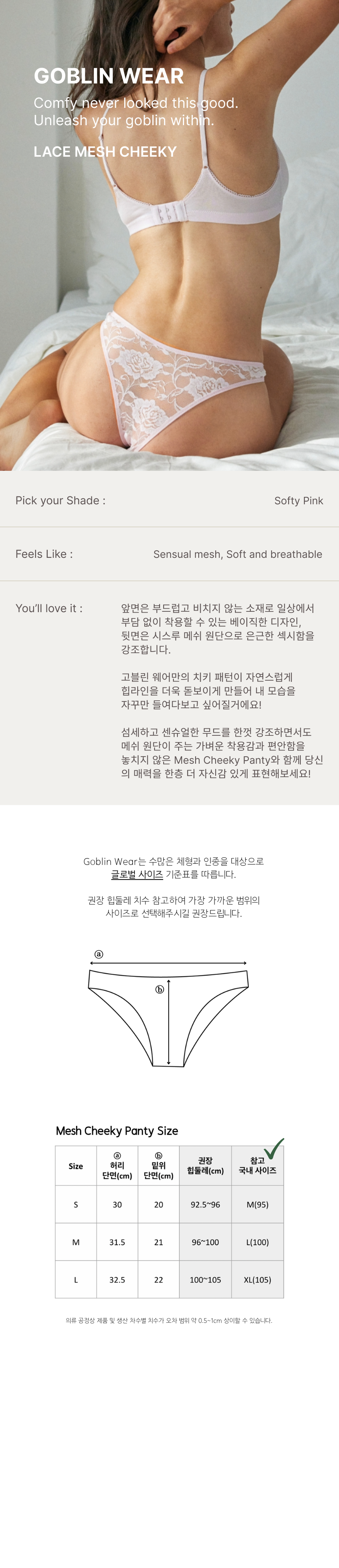 *하기 이미지는 힙 부분이 보정된 것으로 실제로는 더욱 비침이 있습니다.