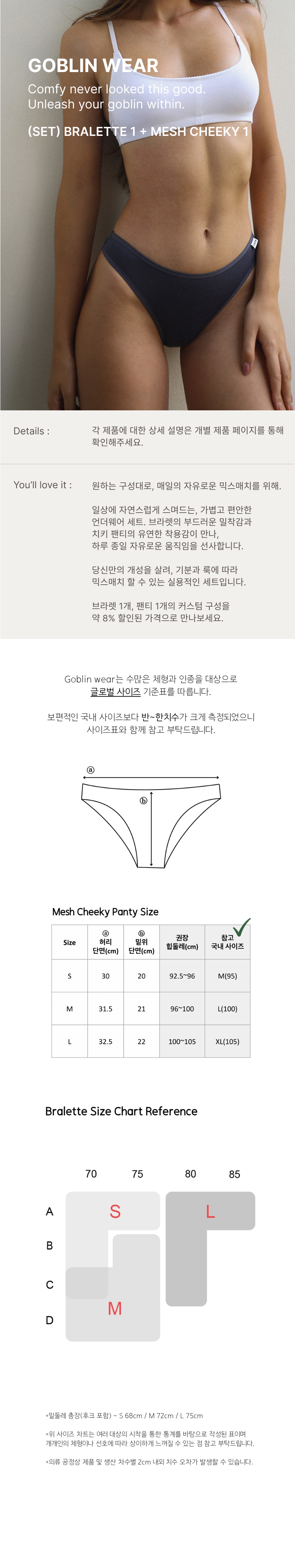 원하는 브라렛과 메쉬팬티 를 할인된 구성으로 함께 만나볼 수 있는 세트