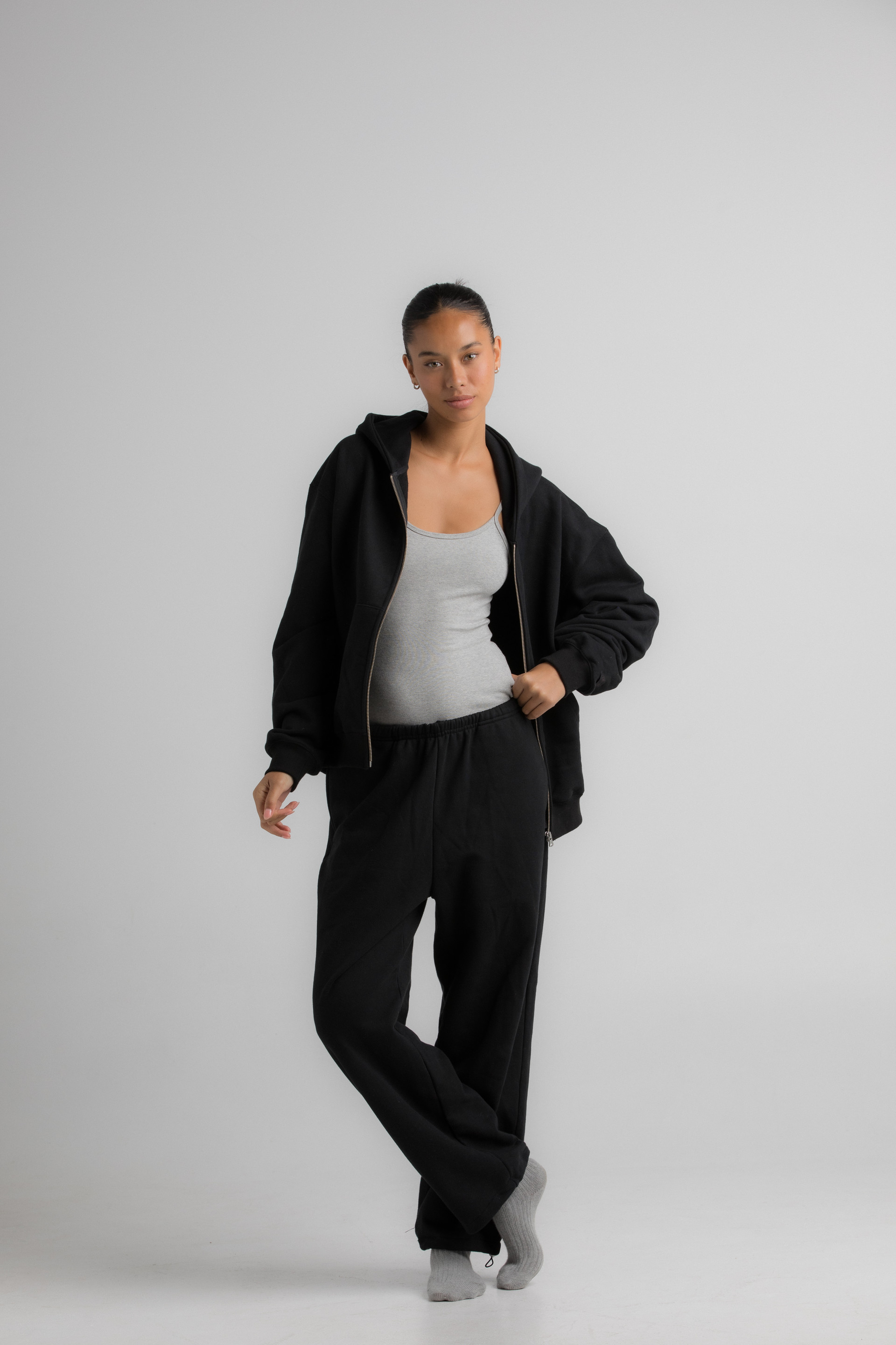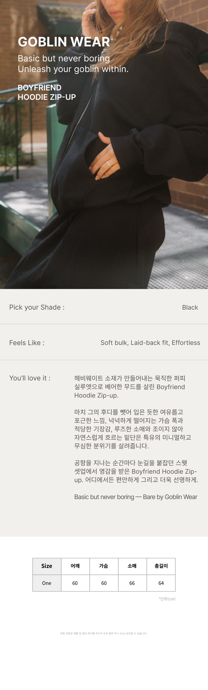 Boyfriend Hoodie Zip-Up(Black)
