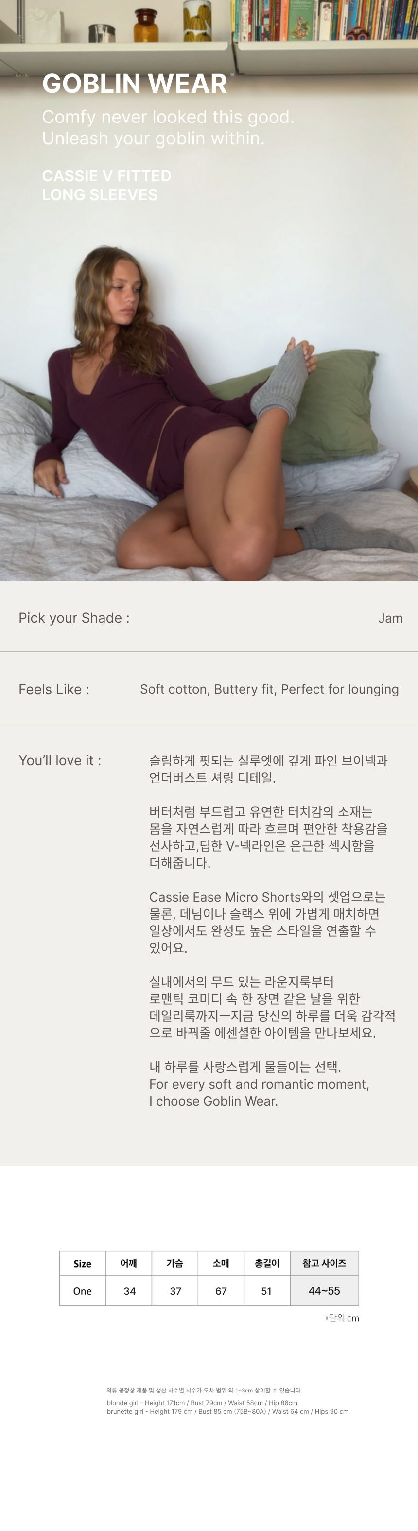 -Height 171 cm / Bust 79 cm (70A~75AA) / Waist 58 cm / Hips 86 cm