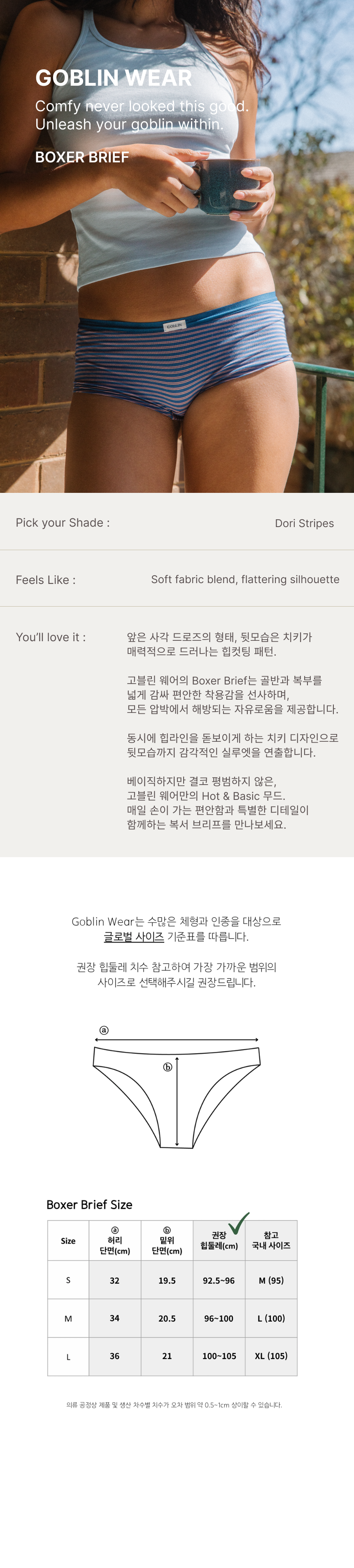 원단 특성, 신축성에 따라 동일 사이즈라도 디자인별 실측 및 패턴 차이가 있으며 최적의 피팅을 위한 설계로 불량이 아닌 점 참고 부탁드립니다.
