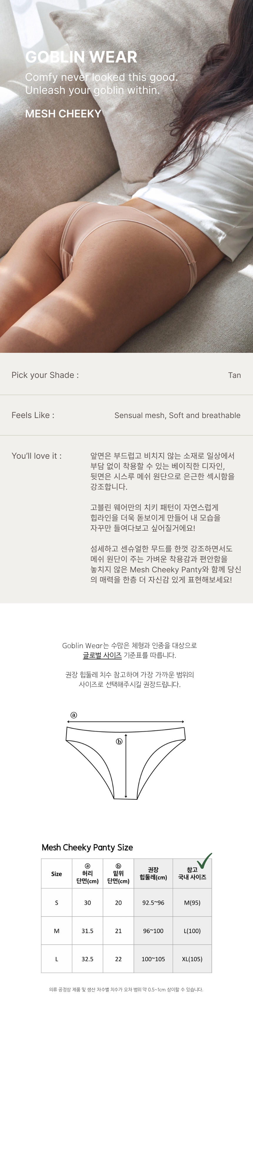 *하기 이미지는 힙 부분이 보정된 것으로 실제로는 더욱 비침이 있습니다.