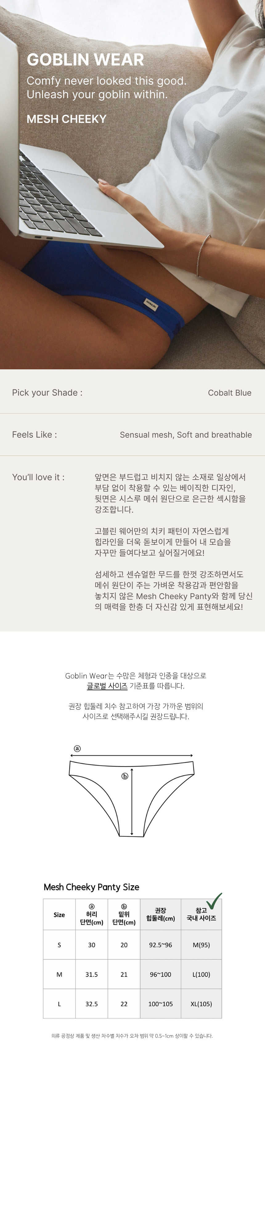 *하기 이미지는 힙 부분이 보정된 것으로 실제로는 더욱 비침이 있습니다.